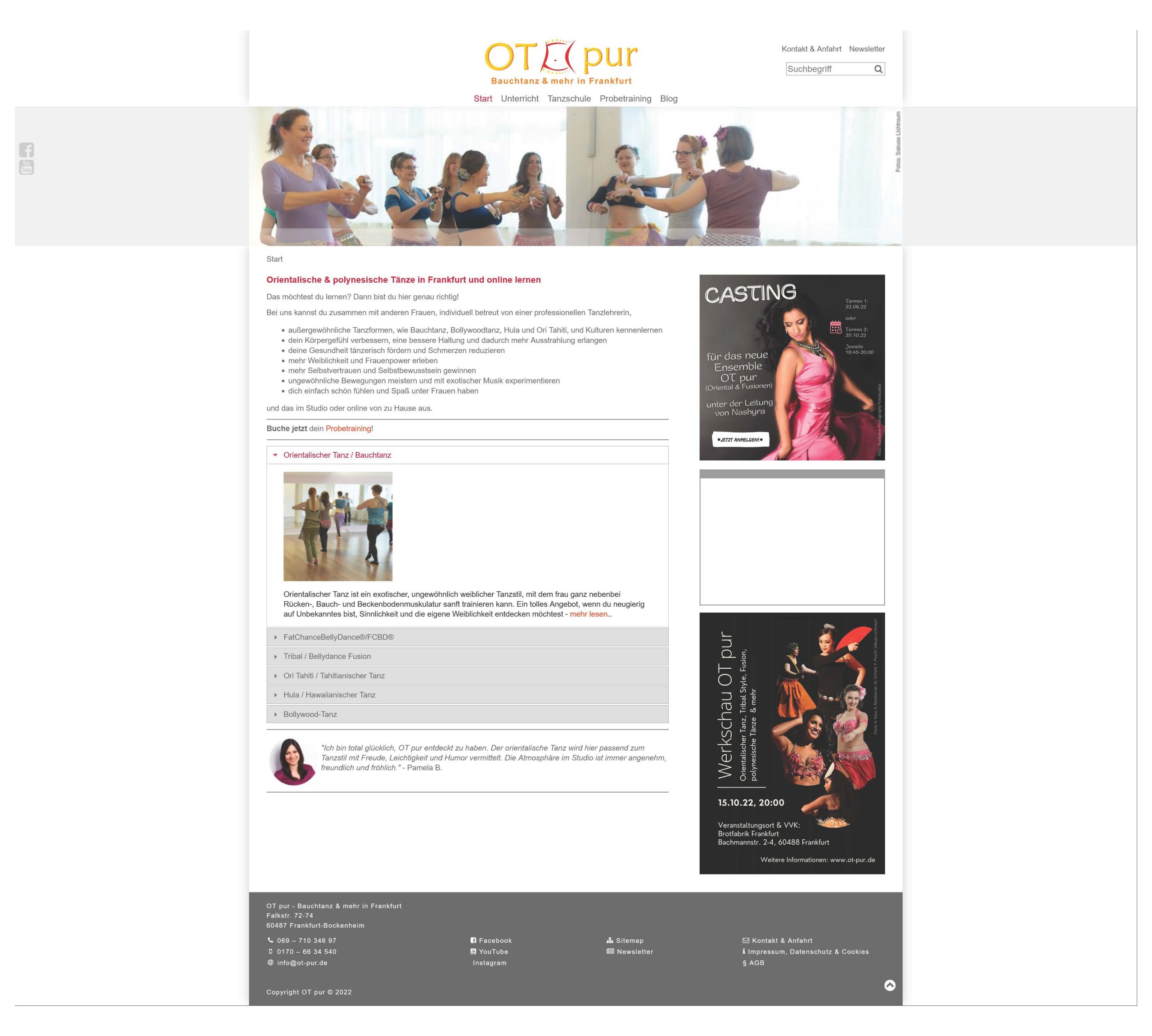 Die Neugestaltung der Webseite wirkt modern, lebendig und feminin. Klare Strukturen, geschwungene Elemente und harmonische Farben schaffen ein einladendes Erlebnis, das die Tanzschule perfekt repräsentiert.